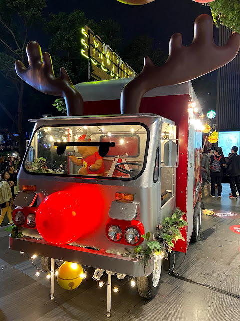 汽車其實是販賣鼻子的地方,也就是販賣聖誕裝飾雪花球
