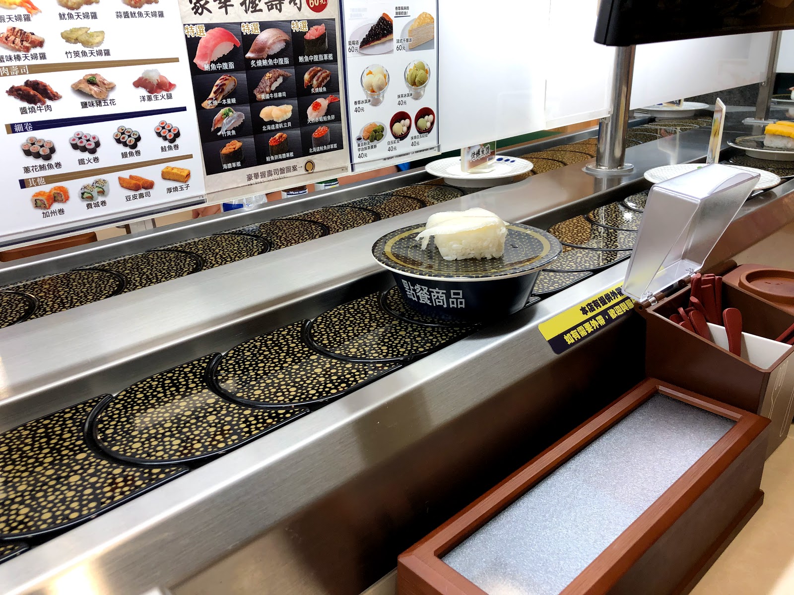比較值得一提的是,這邊的壽司因為只有一條輸送帶,所以點的餐點到達時,螢幕會發出聲音提醒