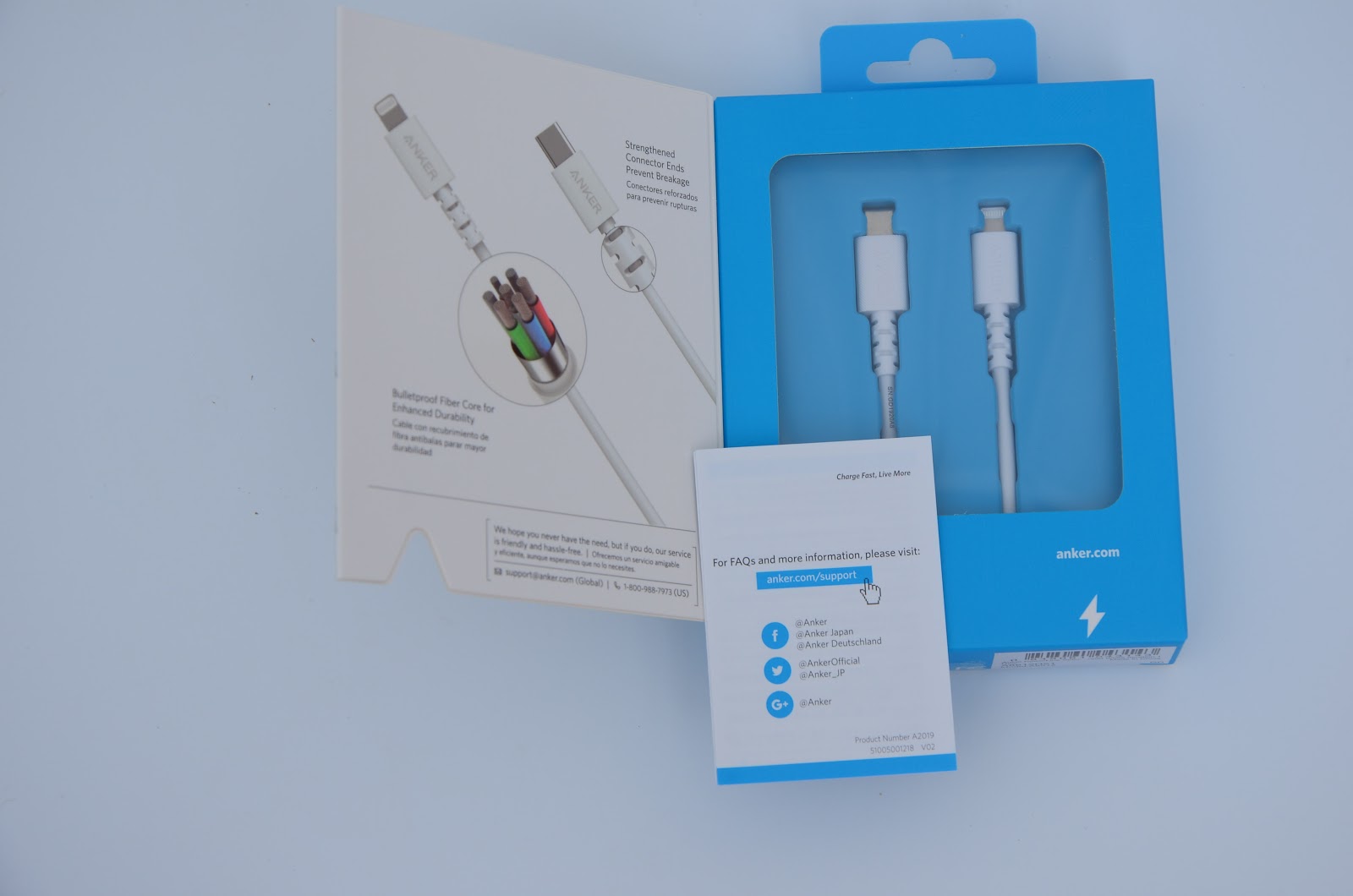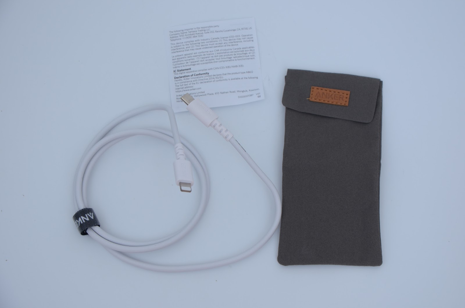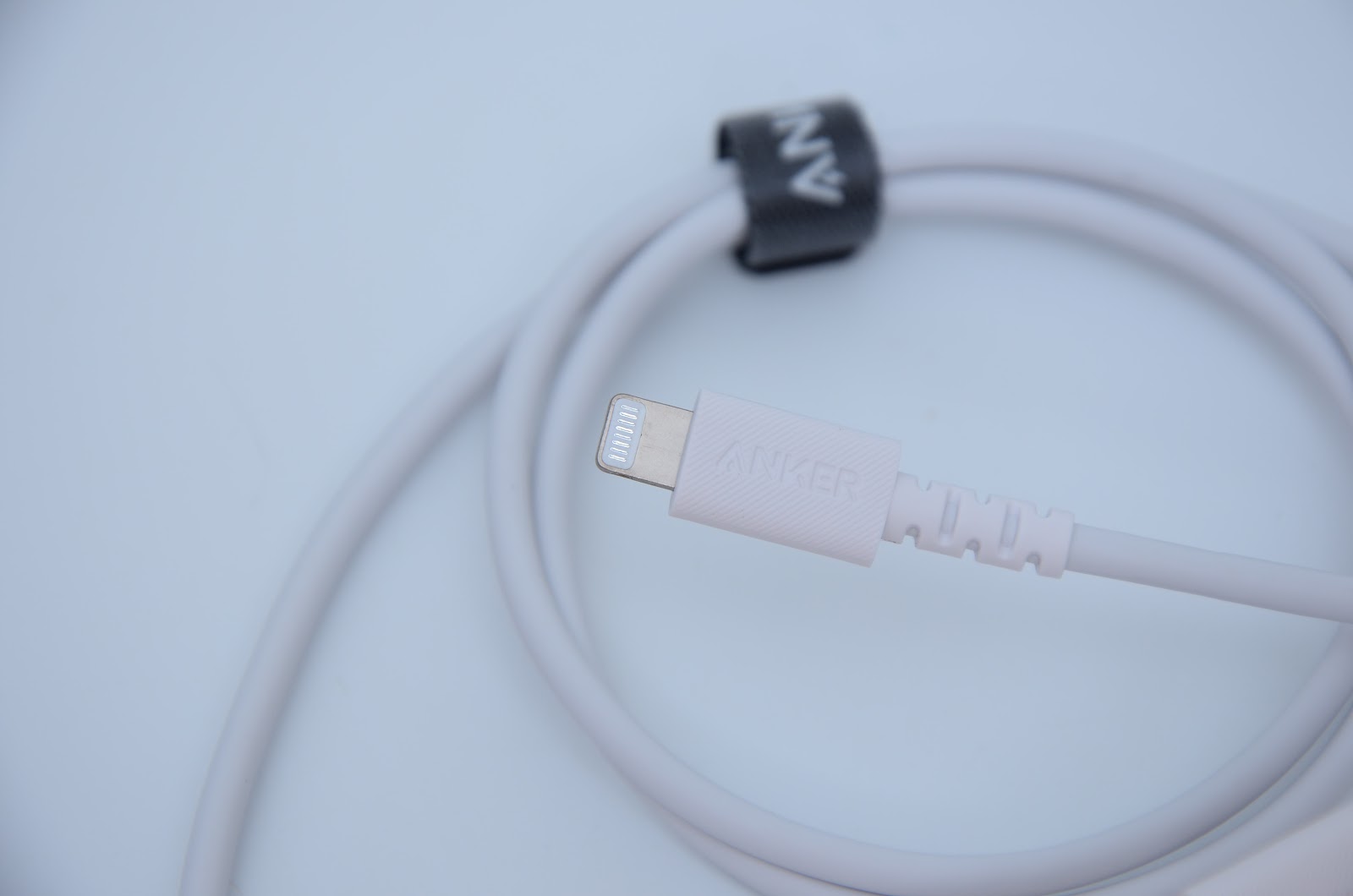 USB-C to Lightning 線材整體模樣,有魔鬼氈綁帶還有附袋子,線摸起來用料非常的好,又粗又硬
