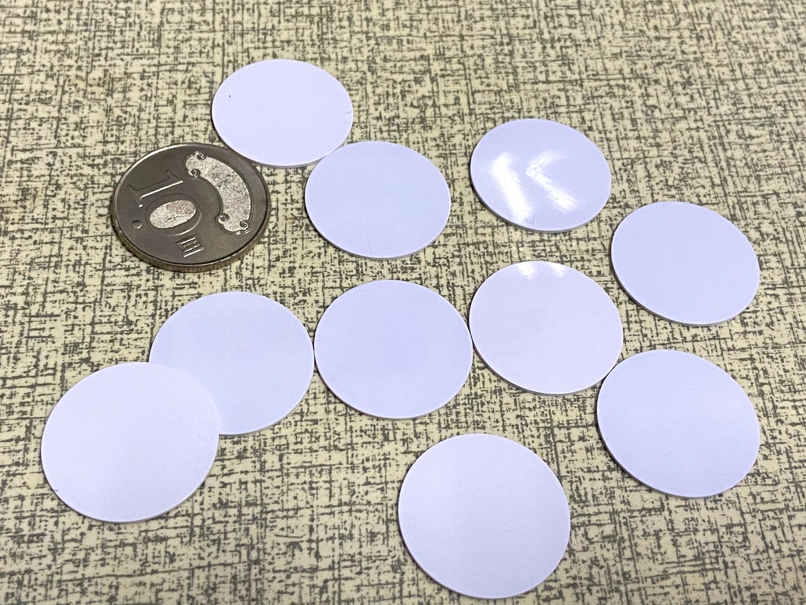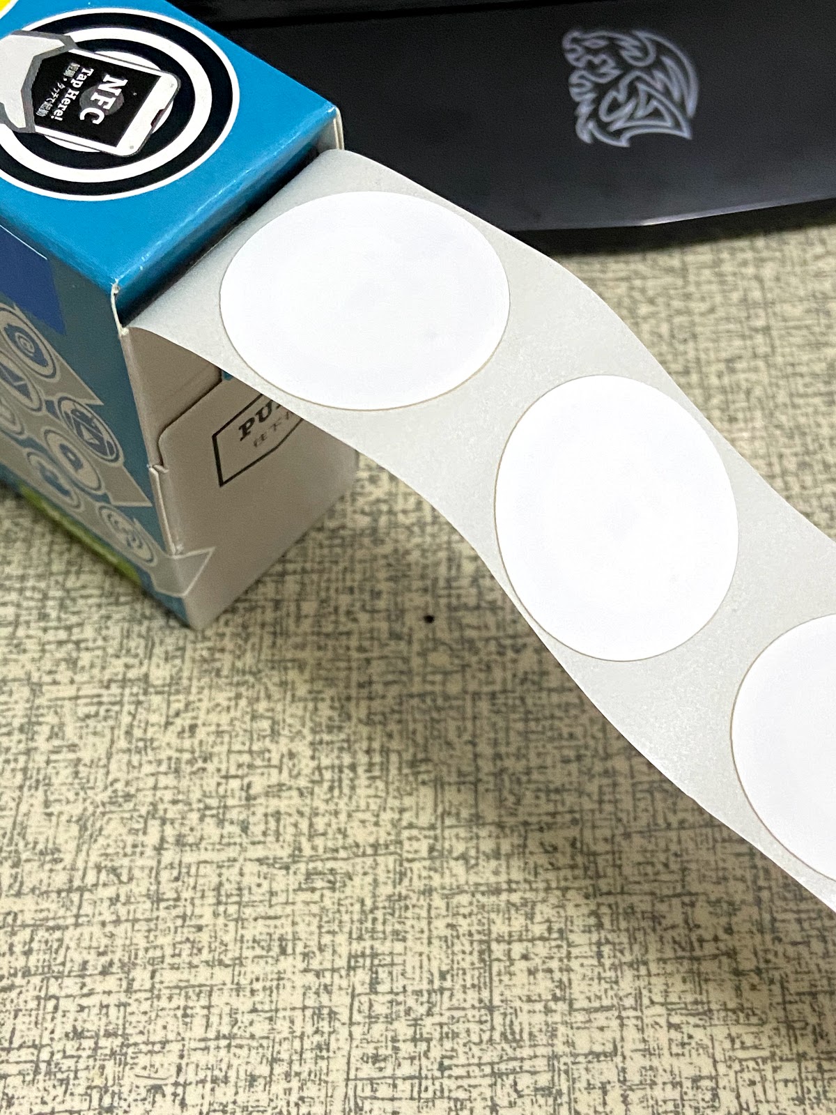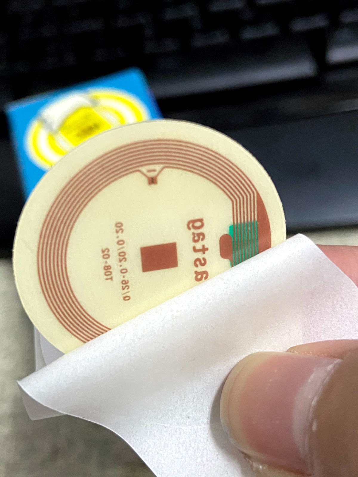 另外一組也是蝦皮買的自製感應標籤,也是可以感應,外表是塑膠,可以隨意黏或放在任意地方(也許縫在娃娃裡也是個不錯的主意)
